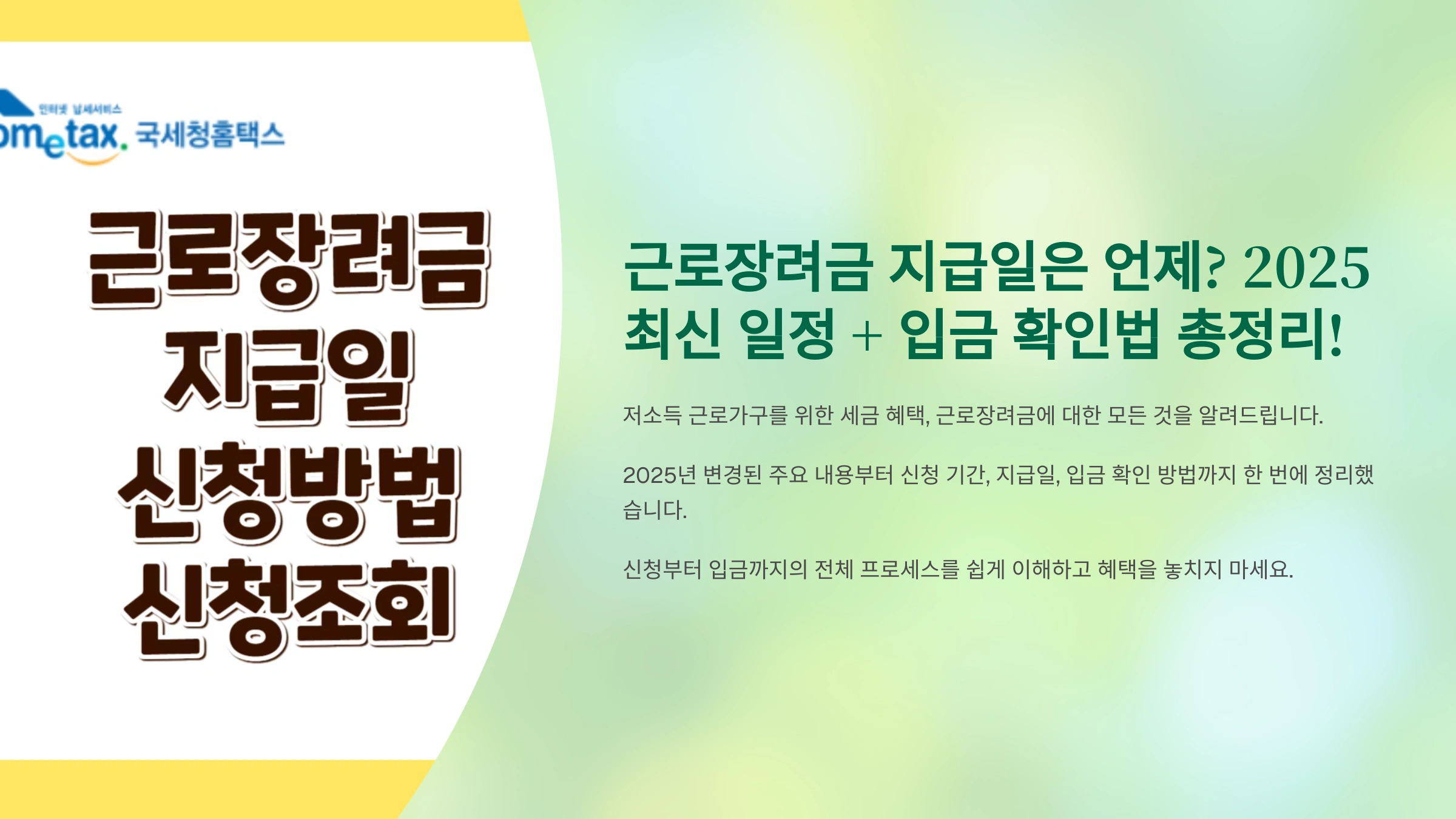 근로장려금 지급일은 언제? 2025 최신 일정 + 입금 확인법 총정리!