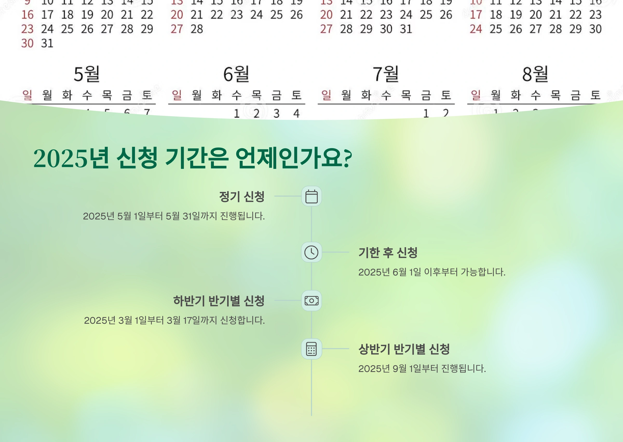 | 정기 신청 | 5월 1일~5월 31일 | 8월 중 |