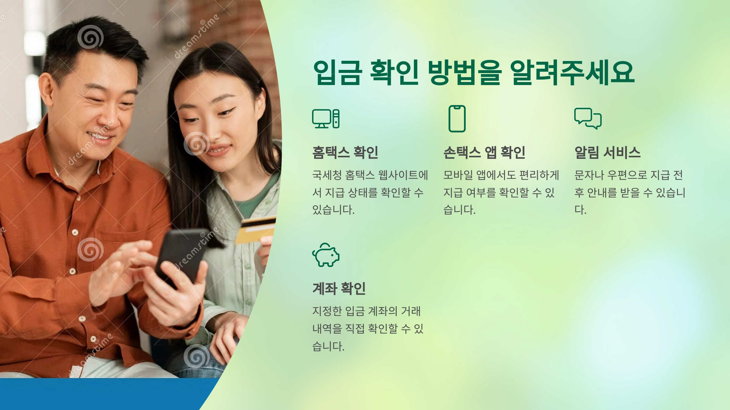 3. 문자 또는 우편 안내: 국세청은 입금 전후로 문자메시지나 우편을 통해 안내를 제공합니다. 문자를 받지 못했다면 스팸 메시지함도 확인해보세요.