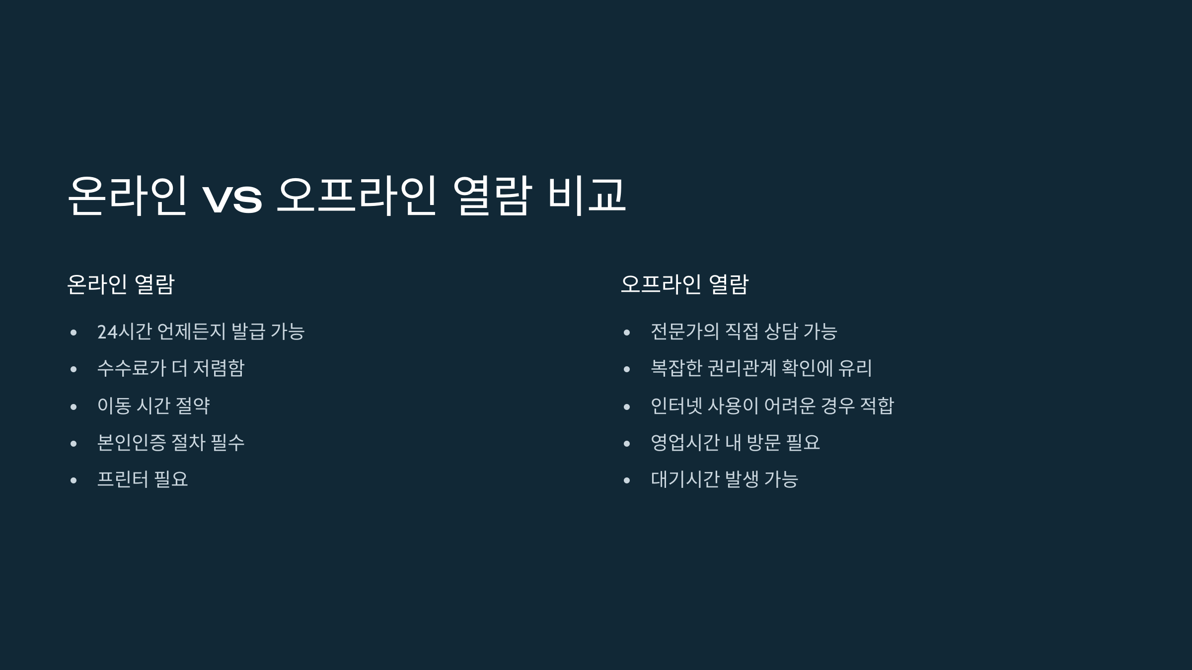 지금부터는 온라인과 오프라인의 차이점, 비용 차이, 열람 시 주의사항도 함께 살펴볼게요. 실수 없이 정확히 열람하려면 꼭 알아둬야 할 정보들이에요. 👀
