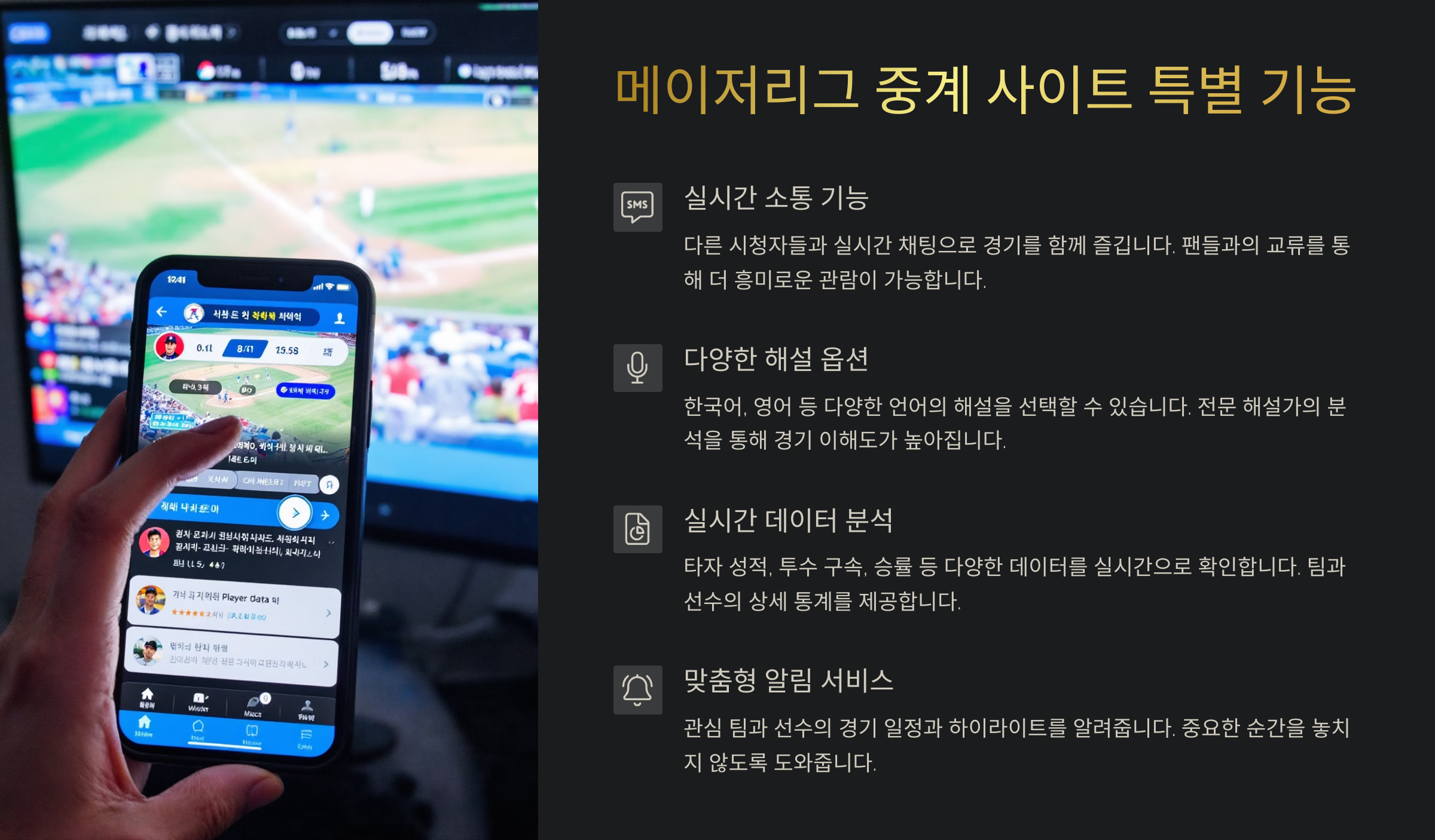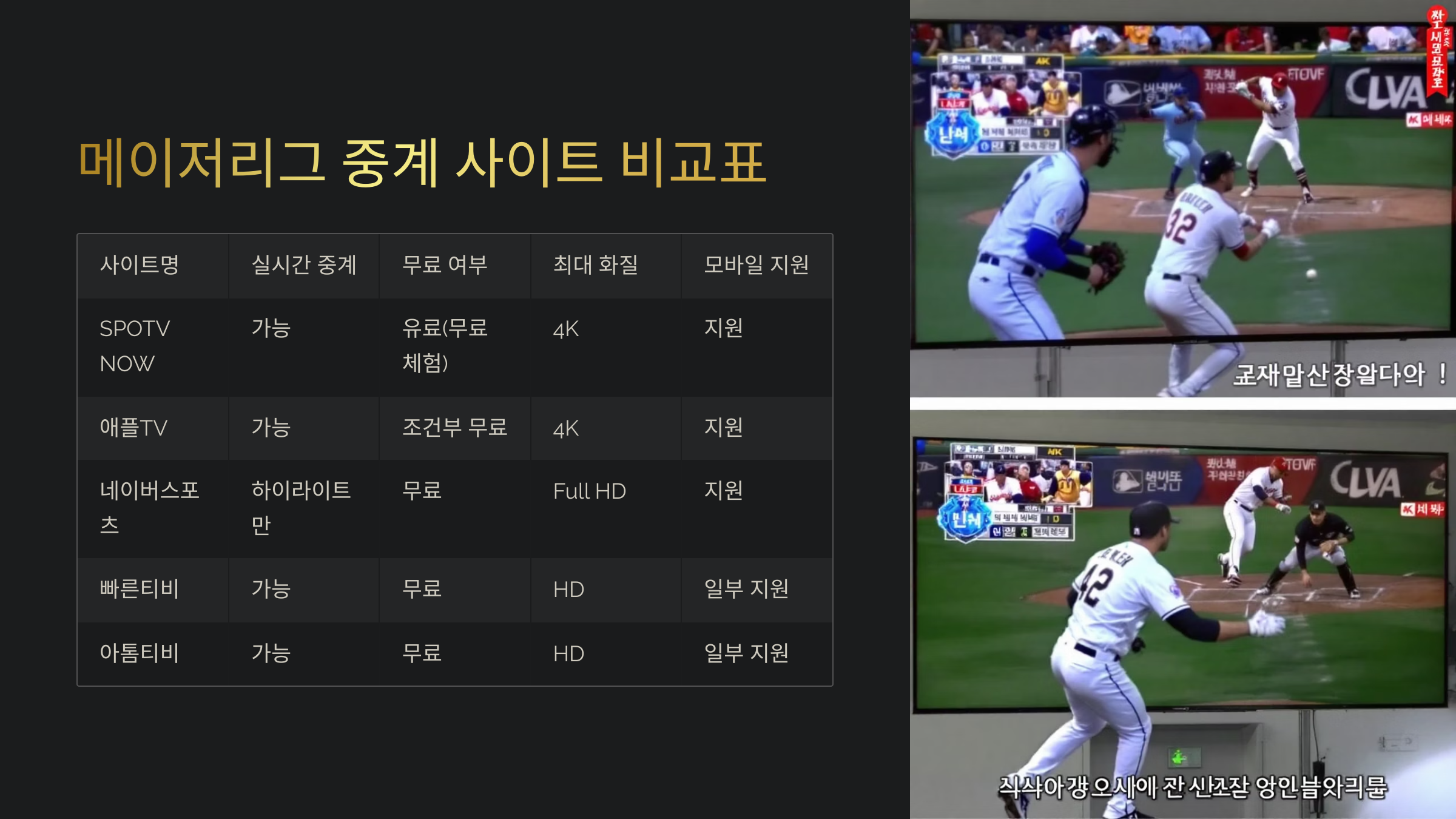 | 빠른티비 | MLB, EPL, NBA | 3중계 채널, 분석 데이터 | 4K/FHD | O |