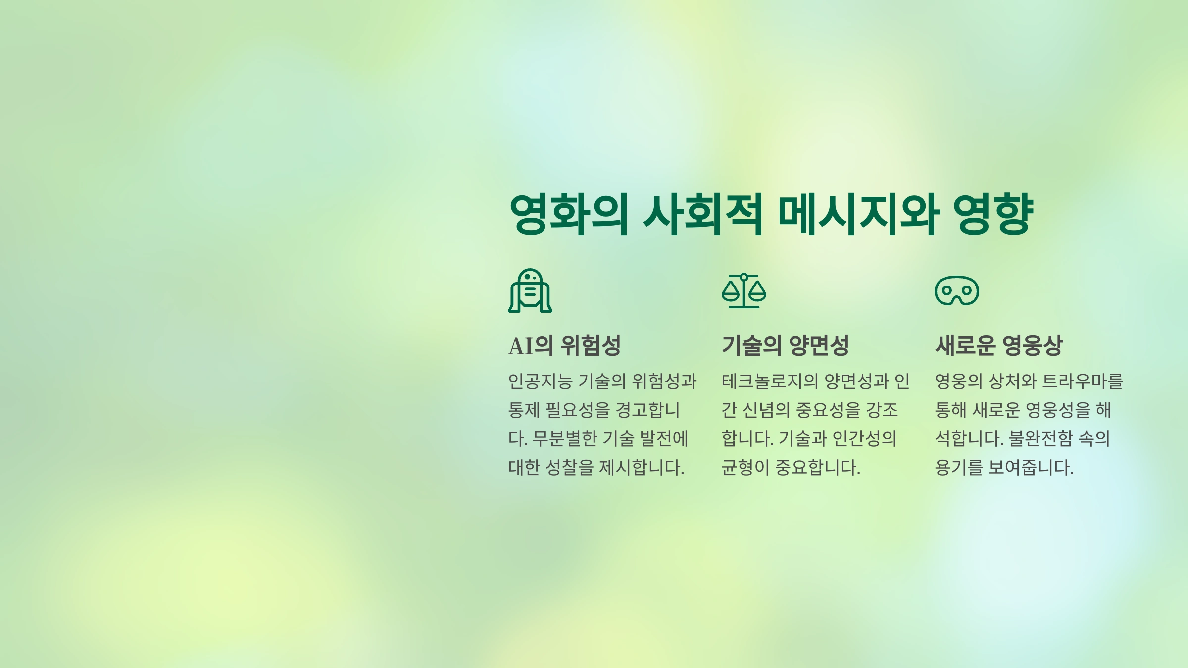 《미션 임파서블: 폴아웃》은 단순한 액션 블록버스터를 넘어 현대 사회의 중요한 문제들을 반영합니다. 테러리즘과 핵무기 확산에 대한 경고는 현실적인 위협을 상기시키며, 수원지 오염을 통한 인류 위협 설정은 환경 문제와 자원 안보의 중요성을 강조합니다.