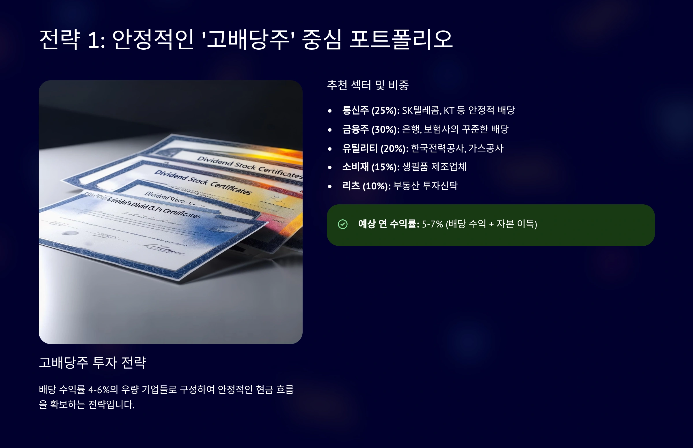 3. 전략 1: 안정적인 '고배당주' 중심 포트폴리오 🏦