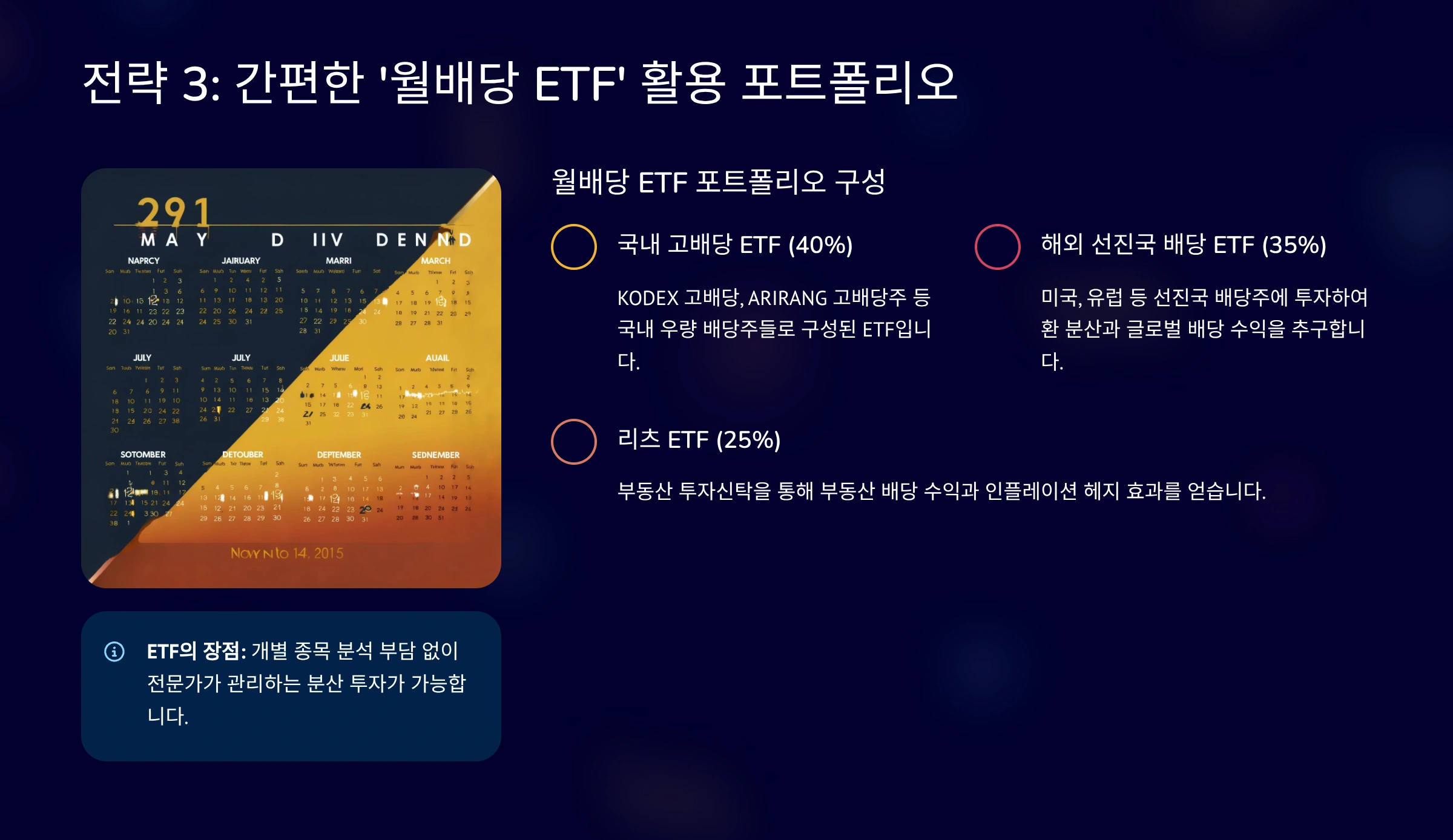 5. 전략 3: 간편한 '월배당 ETF' 활용 포트폴리오 🗓️