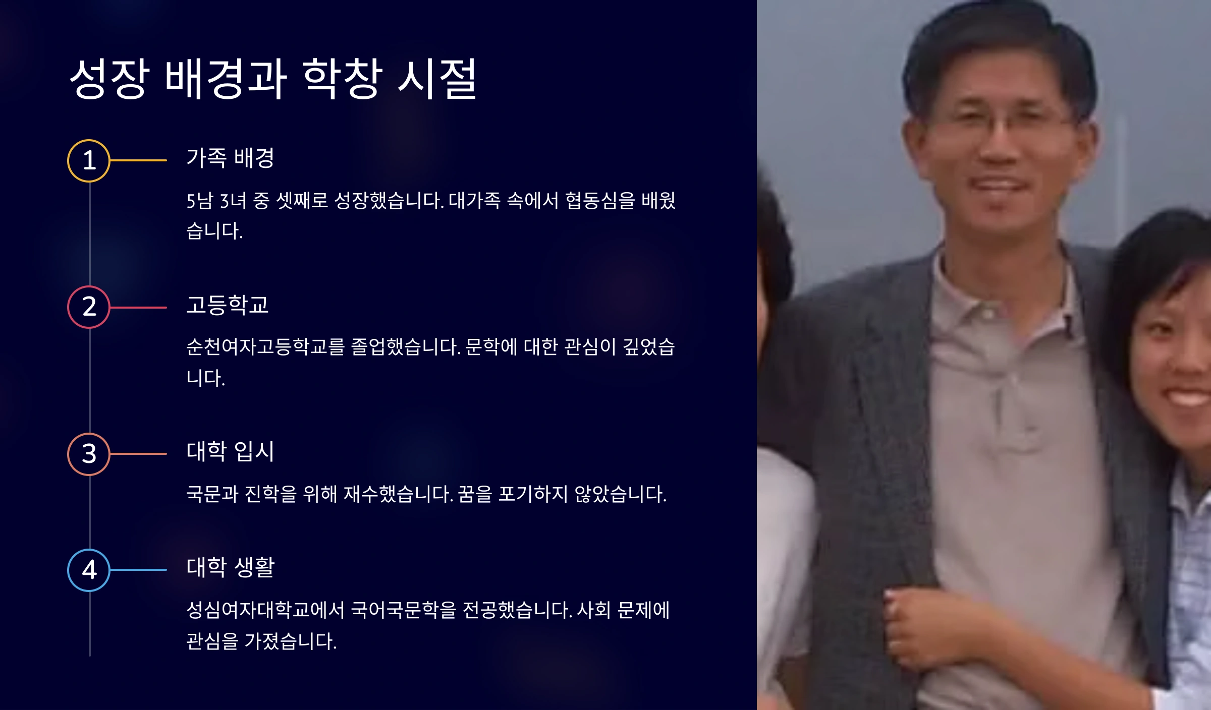 설난영 프로필에서 주목할 만한 점은 그녀의 학창 시절 경험이 이후 노동자 지원 활동의 토대가 되었다는 사실입니다. 대학 시절 배운 이론과 현장에서의 실천을 연결시키는 능력은 그녀의 큰 강점이었습니다.