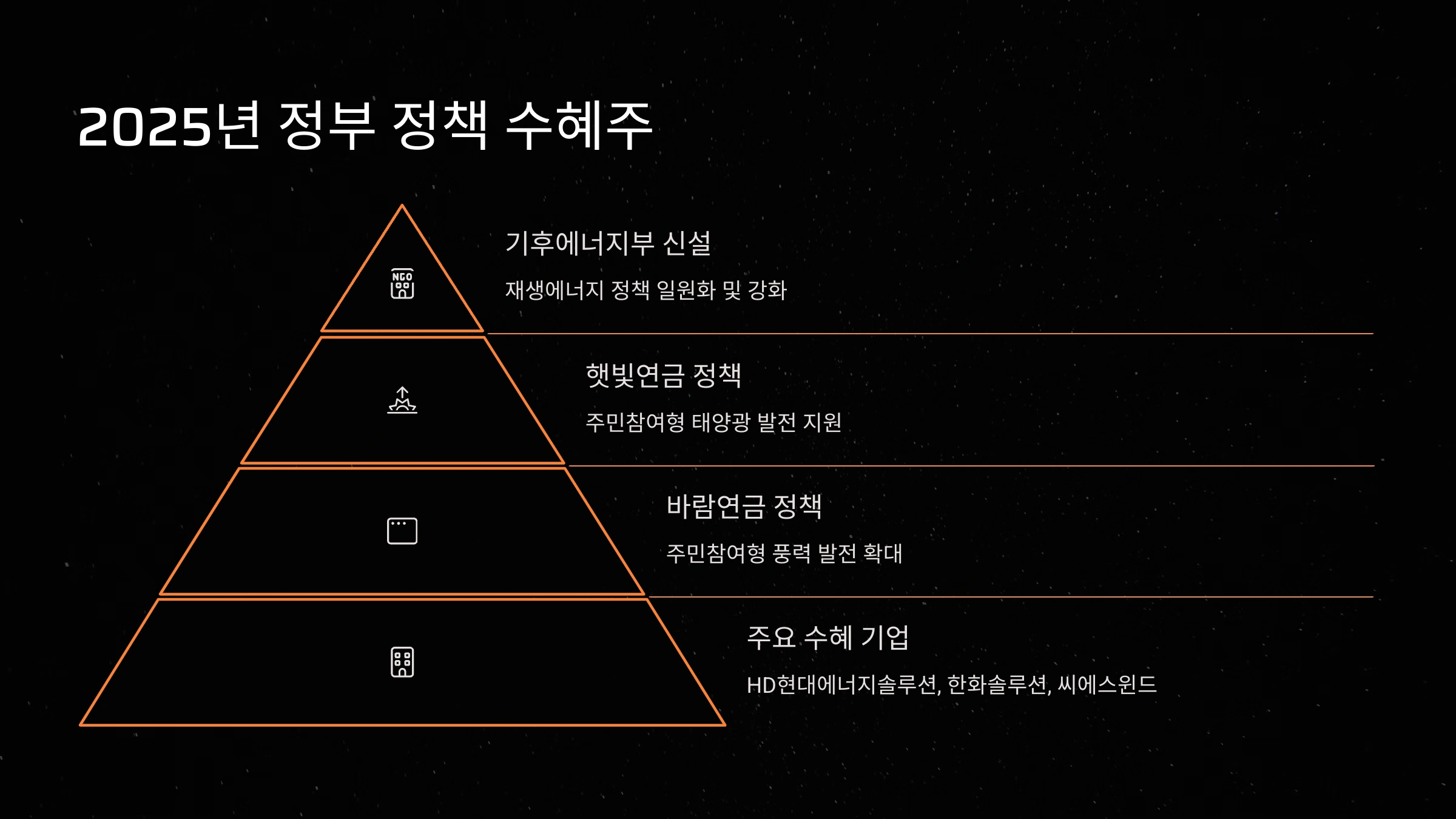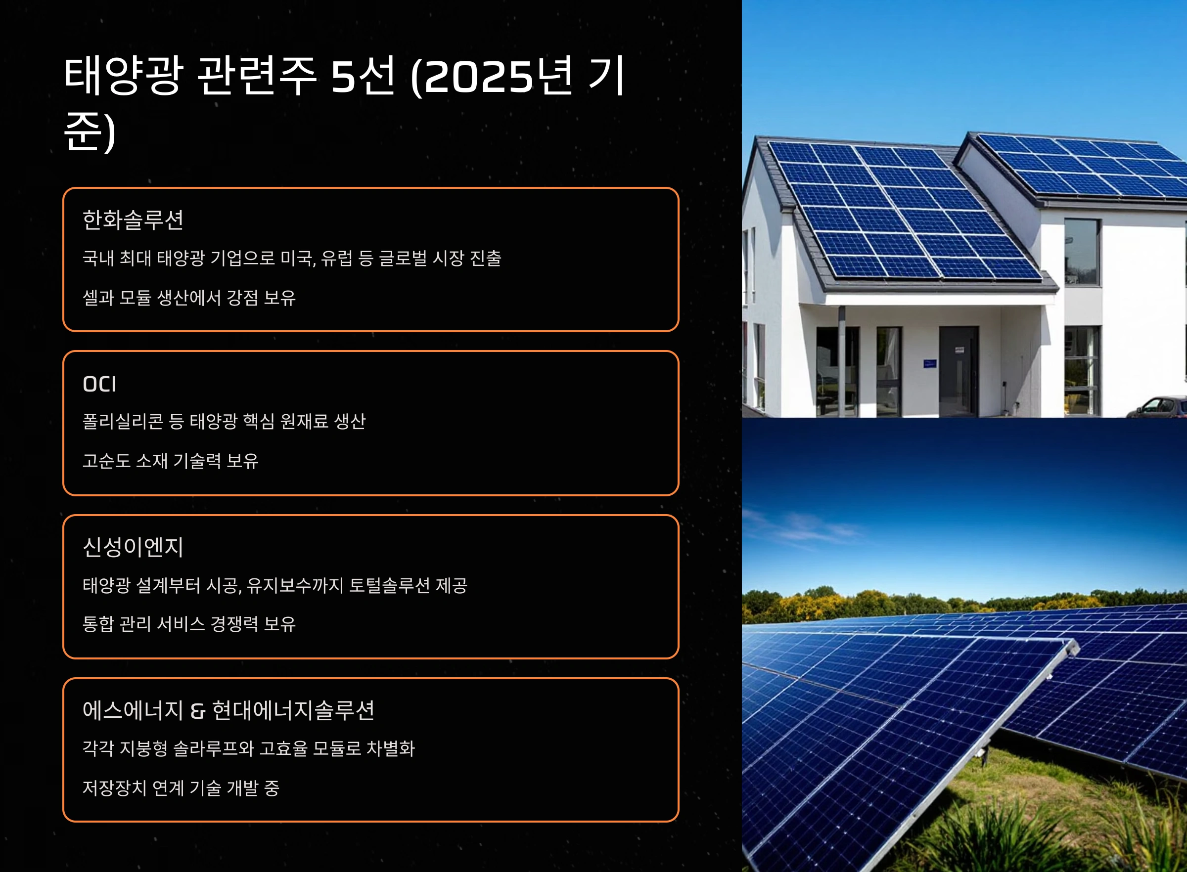 | 한화솔루션 | 태양광 모듈 생산, 해외 시장 진출 | 2025년 정부 정책 수혜로 성장세 지속 전망 |