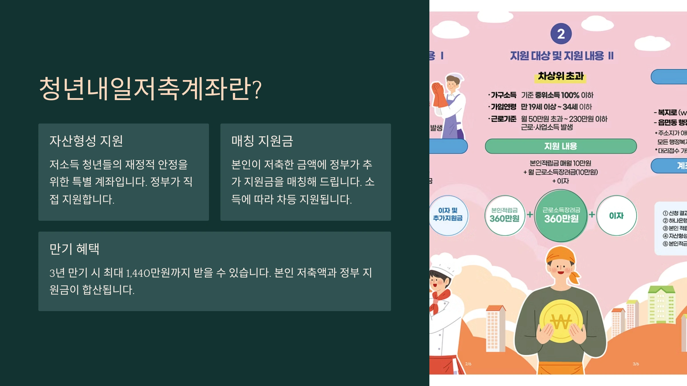 이 제도는 청년들이 적은 금액으로 시작해 정부의 도움을 받아 상당한 자산을 형성할 수 있도록 하는 매우 효과적인 저축 프로그램입니다. 자신의 소득 수준에 맞는 지원금을 확인하고 장기적인 자산 관리 계획을 세워보세요.