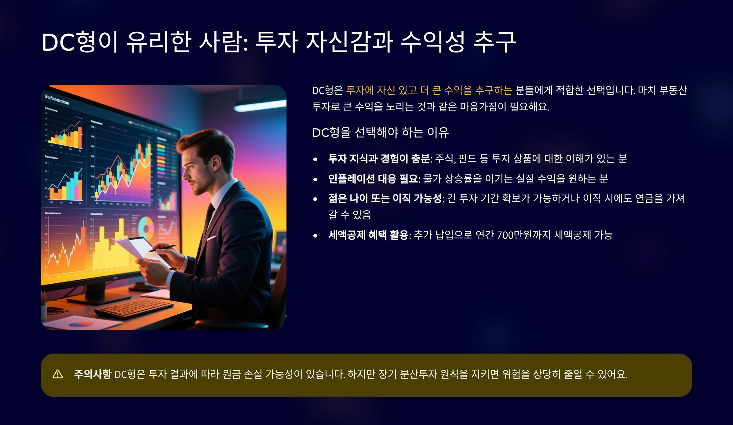 5. DC형이 유리한 사람: 투자 자신감과 수익성 추구 👩💻