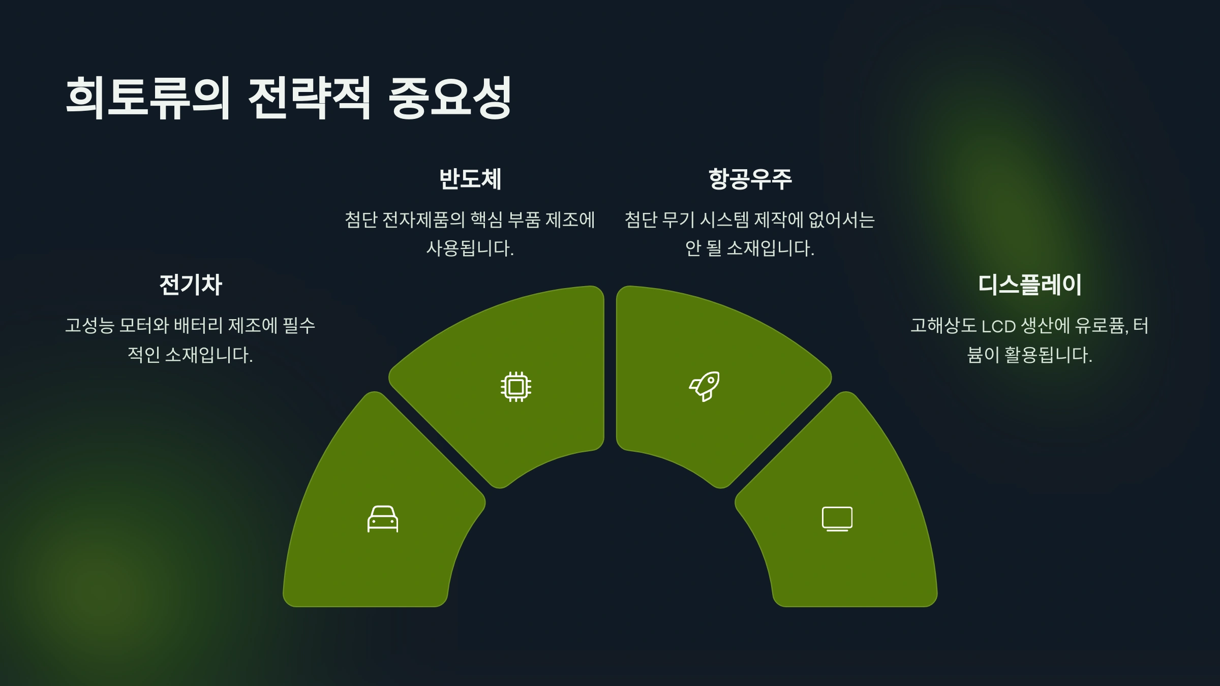 희토류 관련주는 크게 네 가지 분야로 구분할 수 있습니다: