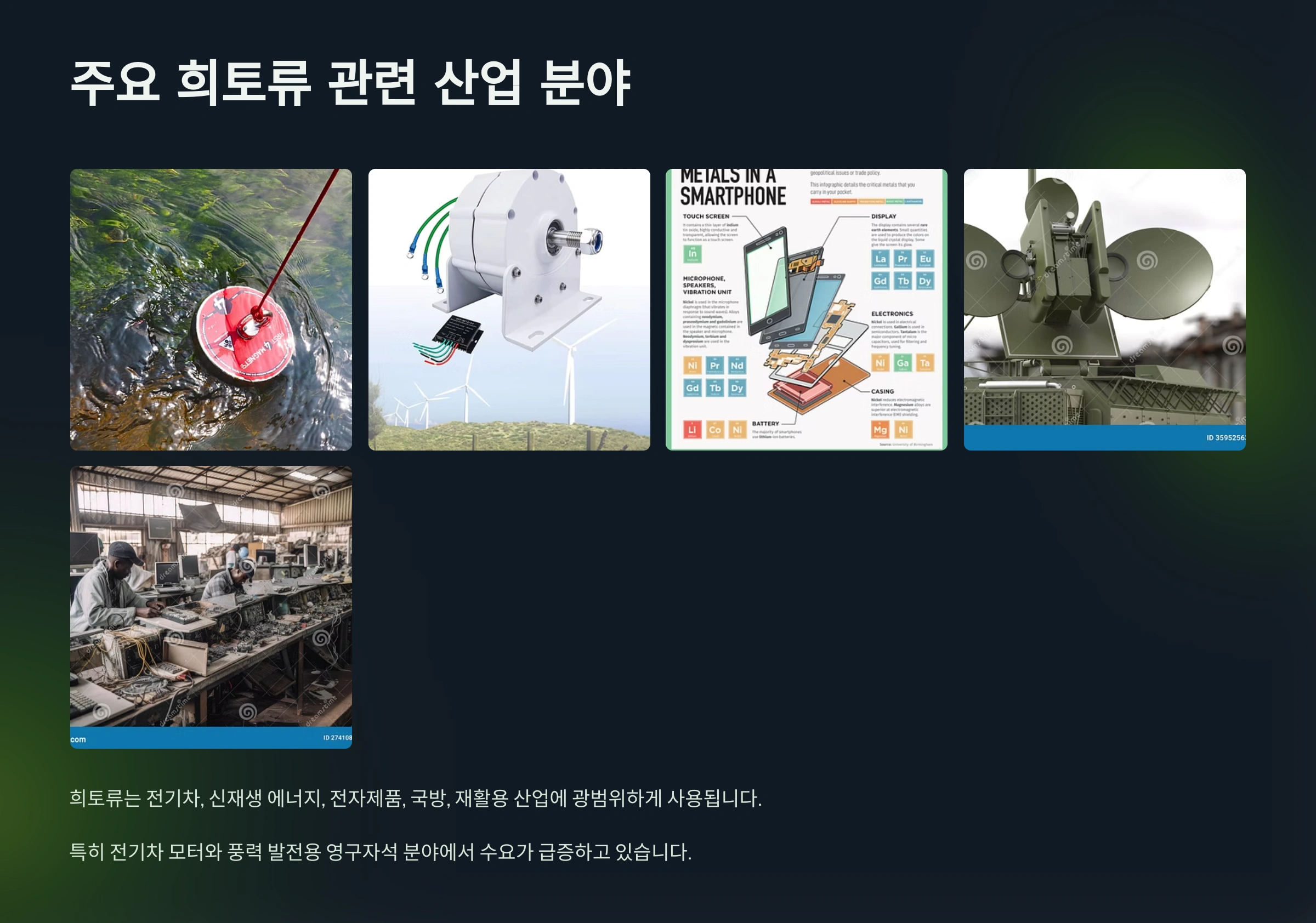 특히 미국 국방산업은 희토류 공급 차질로 인해 무기 생산 지연이 불가피할 것으로 전망되고 있습니다. 이처럼 희토류는 단순한 원자재가 아닌 국가 안보와 산업 경쟁력을 좌우하는 전략 자원으로 그 중요성이 날로 커지고 있습니다.
