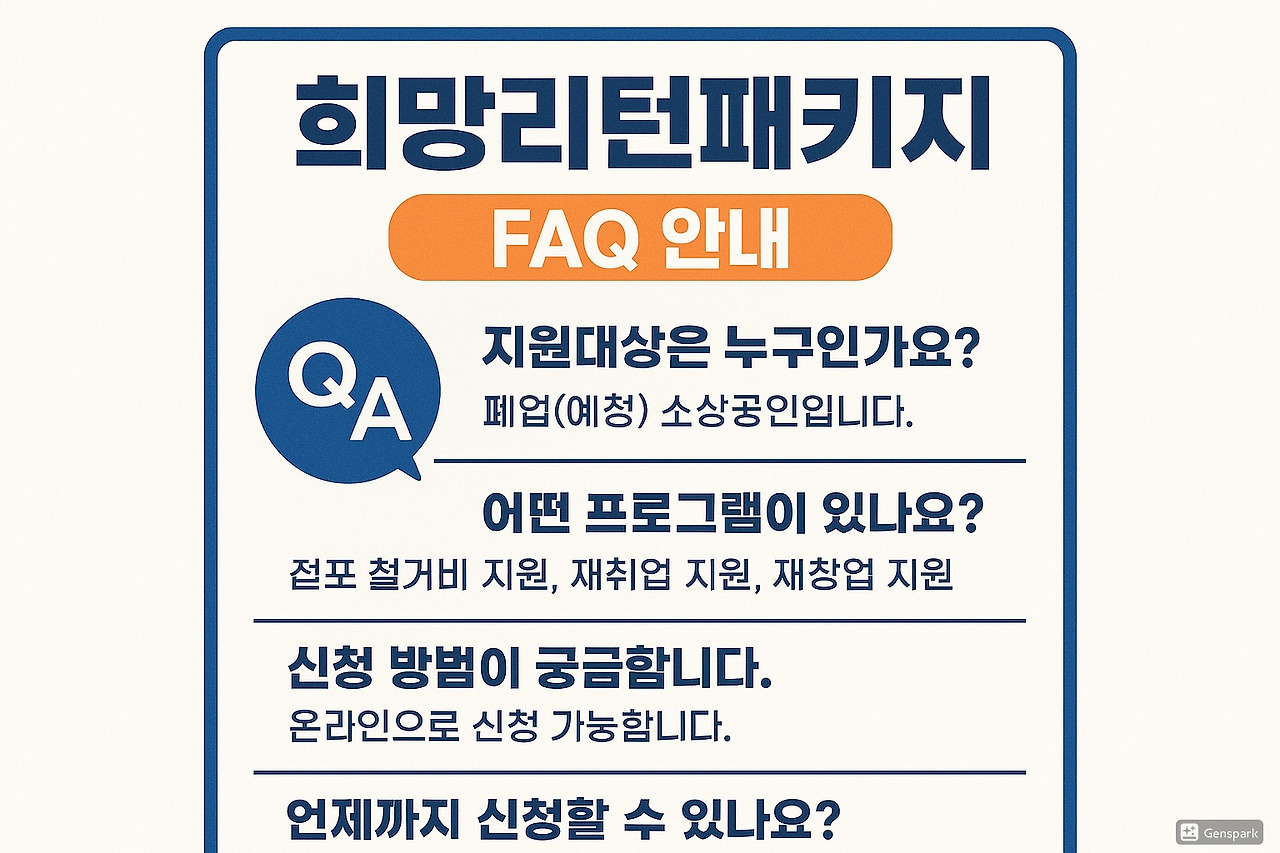 이 글에서는 2025년 희망리턴 패키지의 모든 정보를 상세히 알아보고, 신청 방법부터 지원 내용까지 완벽하게 정리해드리겠습니다. 폐업을 고민하고 계시거나 재기를 준비하는 소상공인 여러분께 실질적인 도움이 되는 정보를 제공하겠습니다.