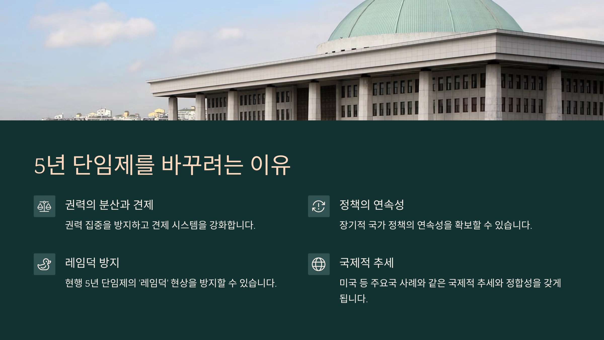 대한민국의 정치 미래, 4년 연임제가 열어갈 새로운 길