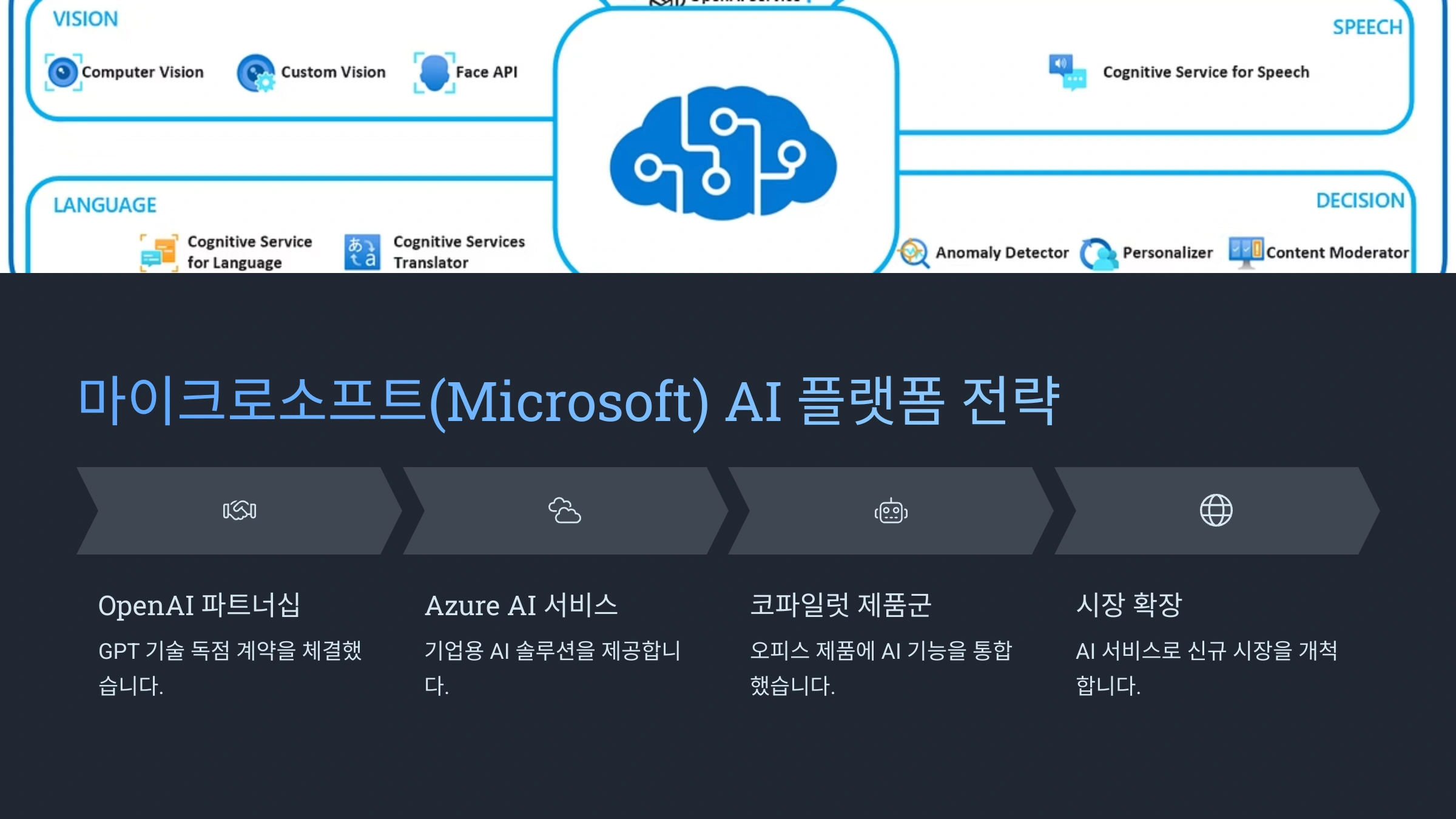 | Microsoft | 클라우드 AI 플랫폼 | Azure AI 서비스 확장 | 기업용 AI 솔루션 시장 성장 |
