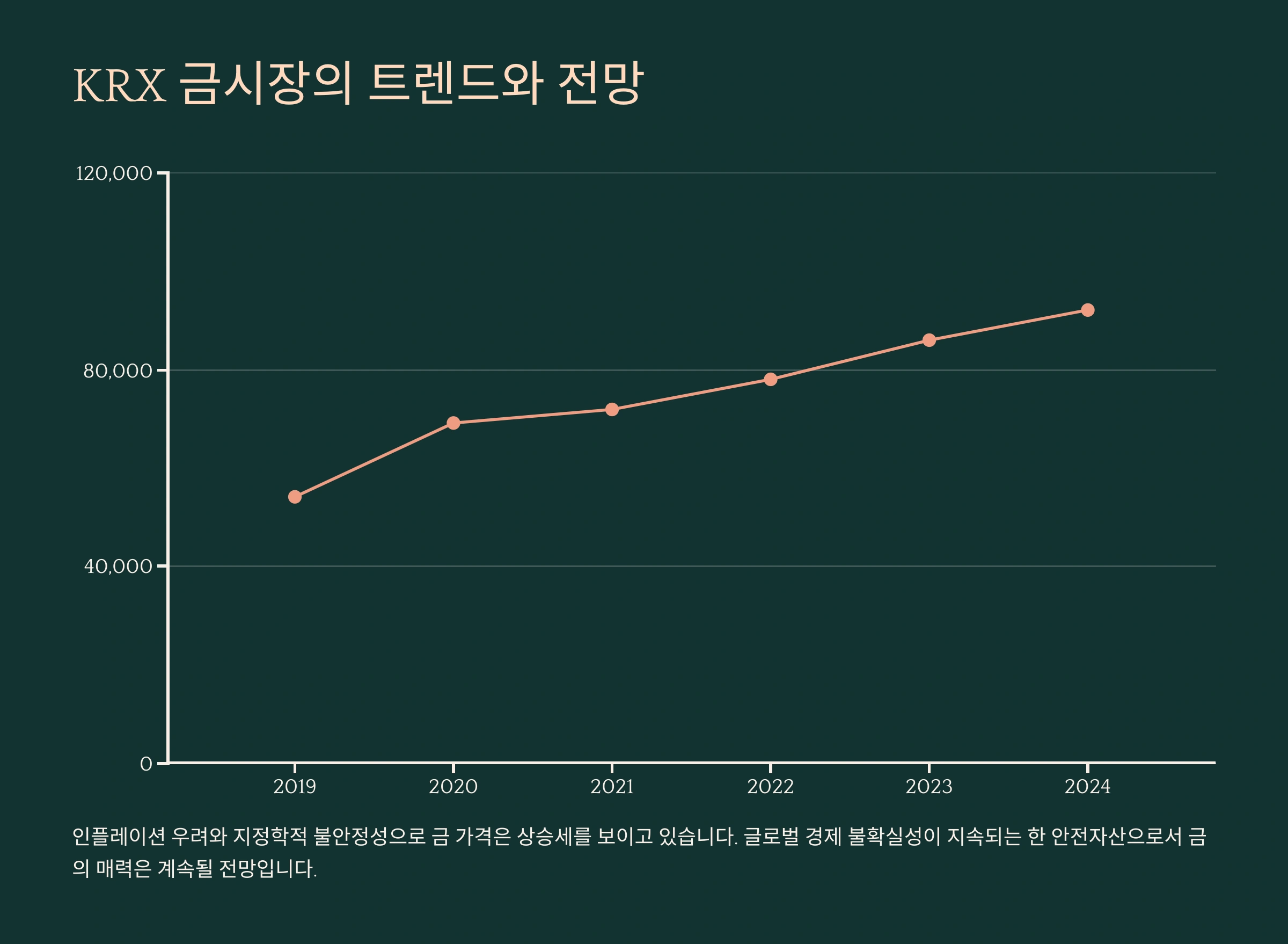 KRX 금시장은 이러한 트렌드에 발맞춰 디지털 금 거래 시스템을 강화하고 있습니다. 모바일 앱을 통한 실시간 매매가 가능해졌고, 사용자 경험을 개선하기 위한 노력이 계속되고 있습니다.