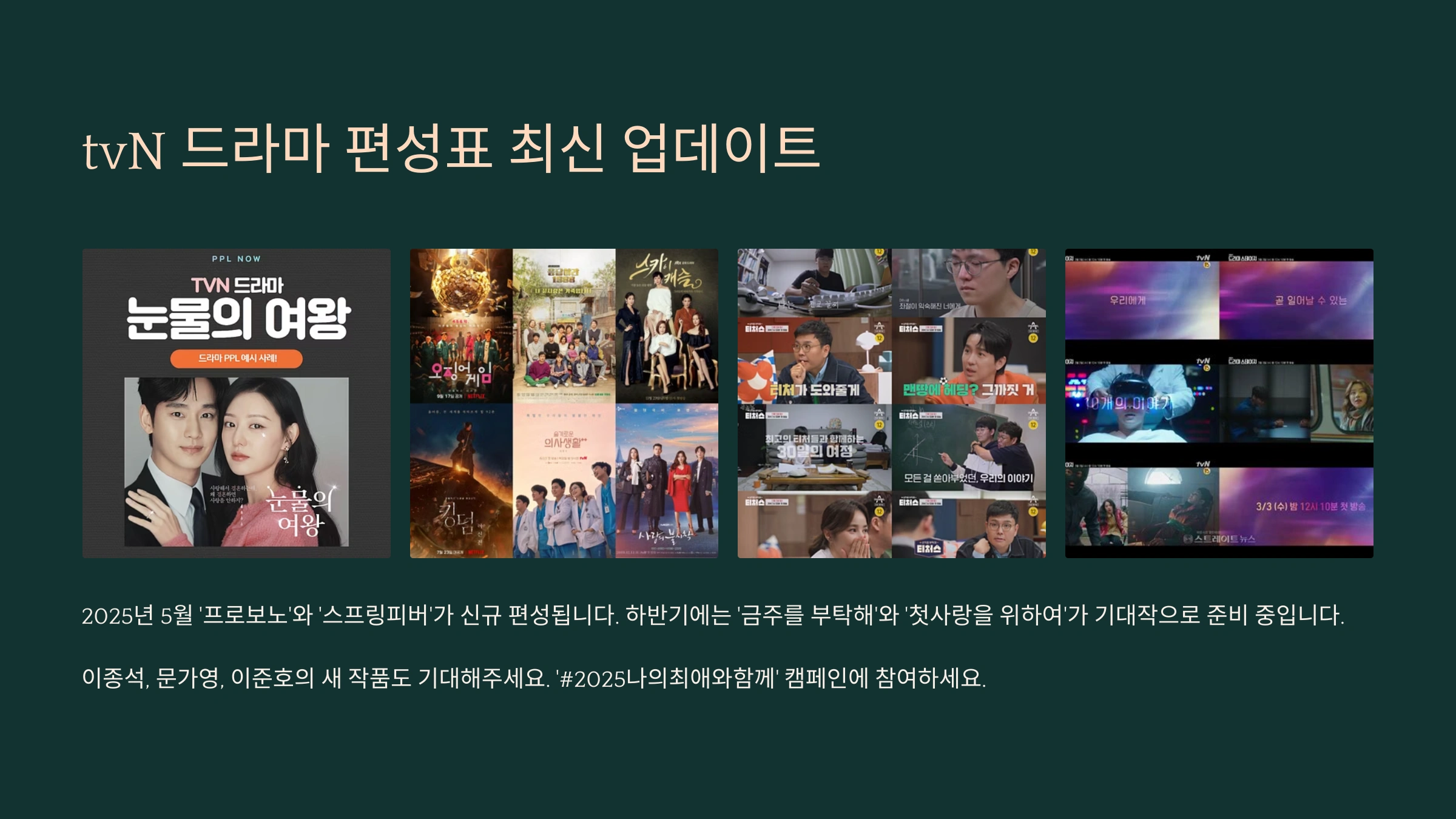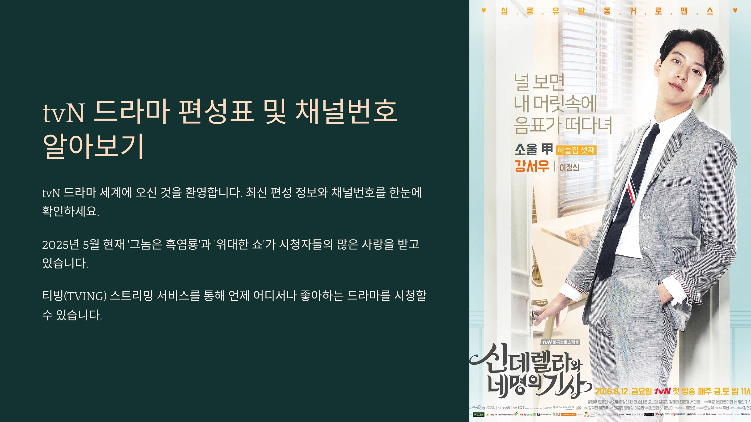 8. tvN 드라마 편성표 최신 업데이트