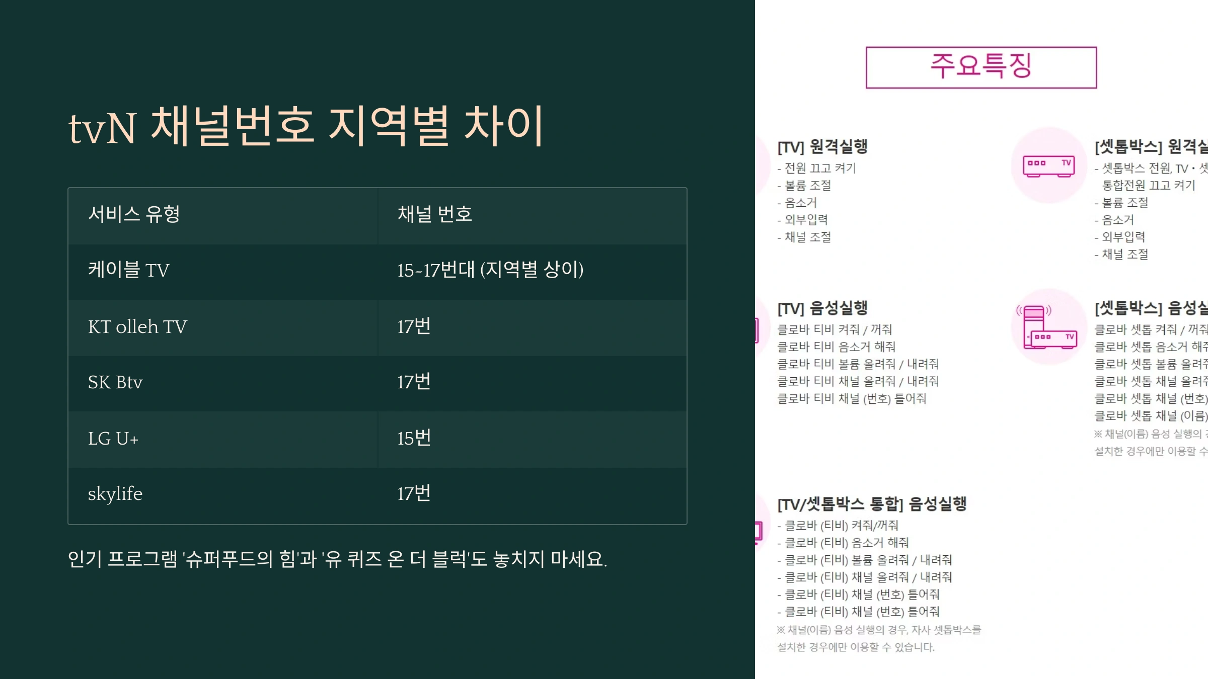 2. tvN 채널번호 지역별 차이